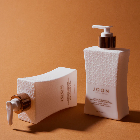 A smoothing, hydrating shampoo infused with saffron and rose extracts. Gently cleanses while helping soften and manage frizz. Safe for color-treated hair.